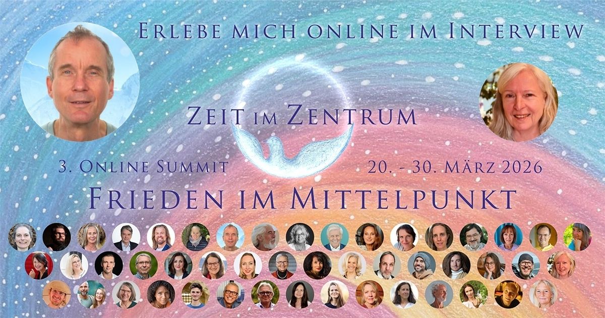 Als mich Sophya vor einigen Wochen fragte, ob ich bereit sei, mich für den Online Summit „Zeit im Zentrum – Frieden im Mittelpunkt” interviewen zu lassen, sagte ich spontan 'ja'. Ich freue mich sehr, Teil dieser Veranstaltung zu sein, bei der so viele wundervolle Menschen zu diesem zeitlosen Thema der Menschheit sprechen.